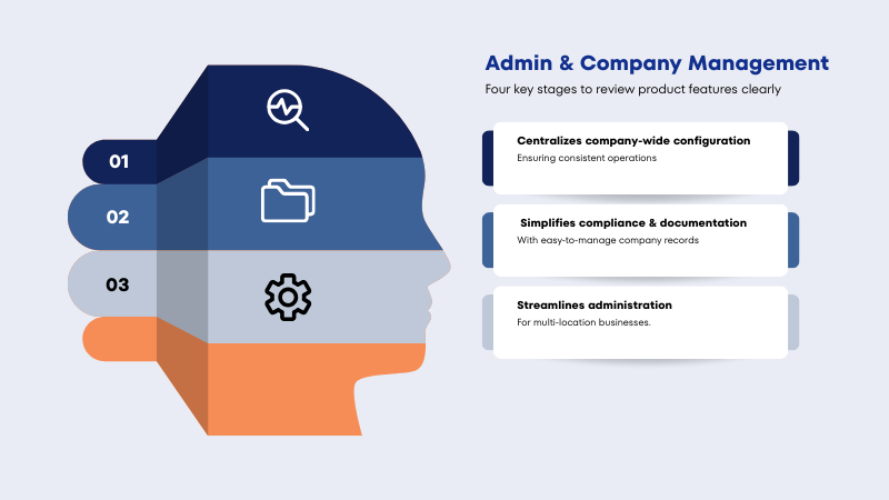 Administrative and company-related settings are consolidated into a streamlined dashboard, ensuring consistent operations across multiple locations. Business owners can manage company information, branding, tax settings, and system preferences centrally. This unified control simplifies compliance, reduces administrative overhead, and enables smoother multi-branch coordination.